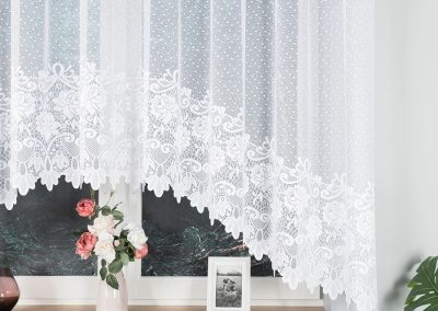 Firana DEMETRIA to połączenie subtelnej elegancji i nowoczesnej lekkości. Pięknie układa się na oknie i doskonale rozprasza światło, tworząc w pomieszczeniu przytulną, jasną atmosferę.