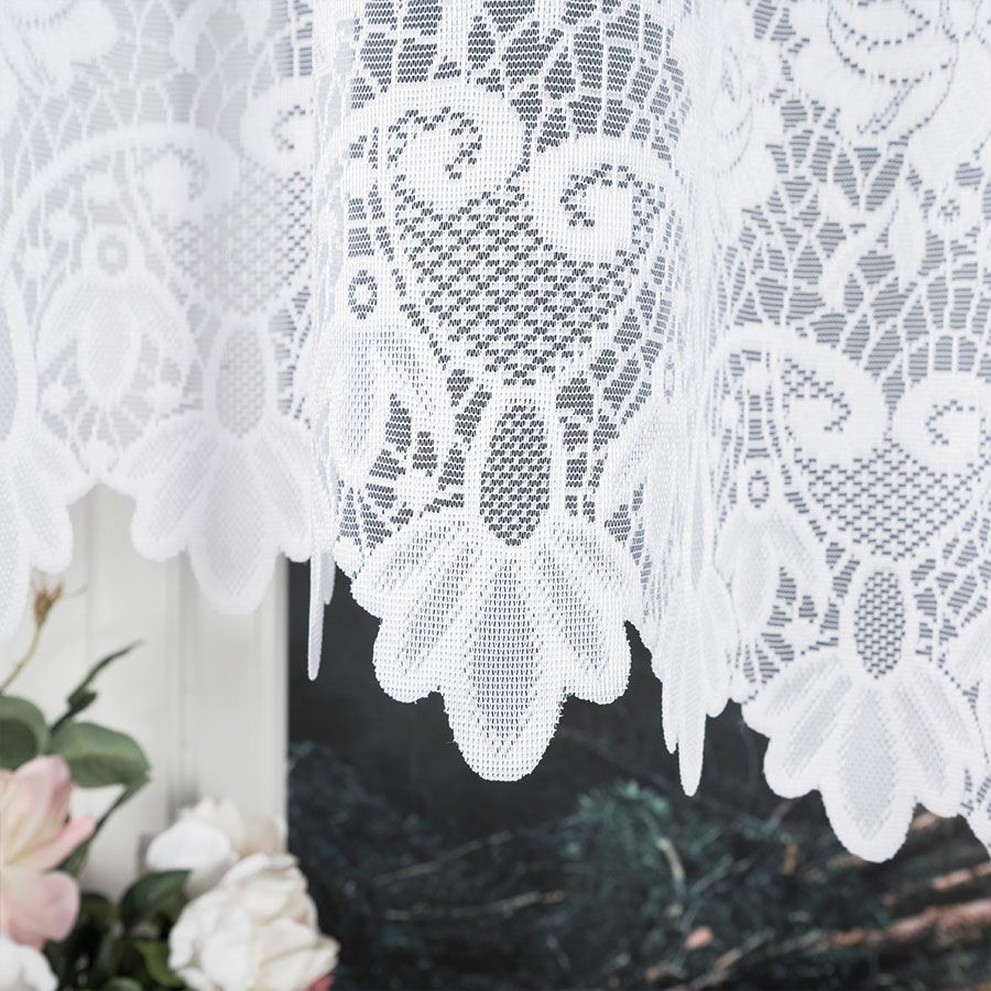 Dzięki taśmie marszczącej, firana jest gotowa do zawieszenia — wystarczy ją powiesić na karniszu z żabkami lub haczykami. Biały kolor sprawia, że pasuje niemal do każdego wnętrza: klasycznego salonu, romantycznej sypialni czy nowoczesnej kuchni.